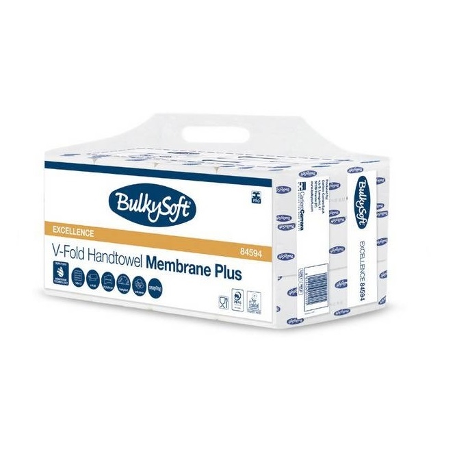 Essuie-mains plié en V, 3c. 100% cellulose FSC, Membrane Plus, 2160 pcs. 21x10.5cm/21 BulkySoft (remplace article 84561)
