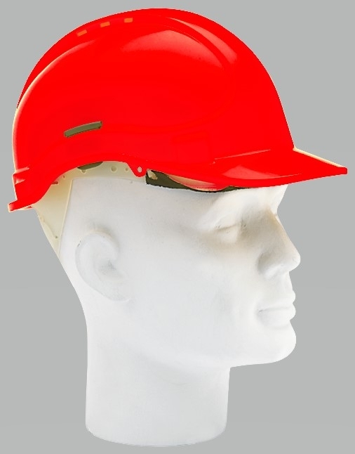 Casque de sécurité JSP EVO 3, rouge. Casque protecteur extrêmement léger 370gr. pour le secteur de la construction et l’industrie. Egalement utilisable pour les travaux sur des installations électriques, pour tensions jusqu’à 1000 V. Aération supérieure,