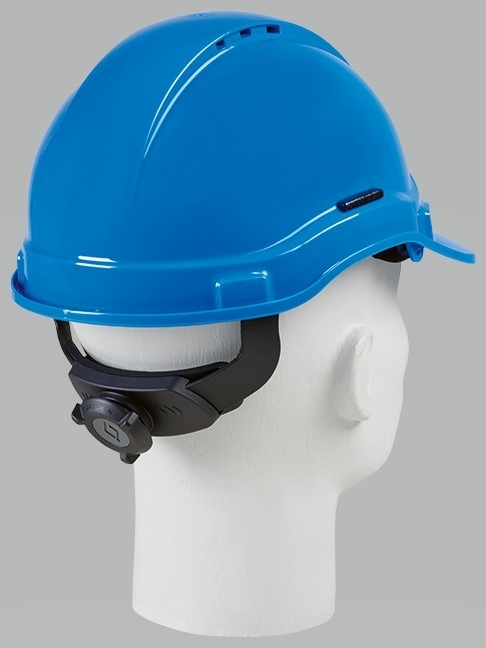 Casque de sécurité JSP EVO 3 Molette, bleu. Casque protecteur extrêmement léger 380gr. pour le secteur de la construction et l’industrie. Egalement utilisable pour les travaux sur des installations électriques, pour tensions jusqu’à 1000 V. fixation régl